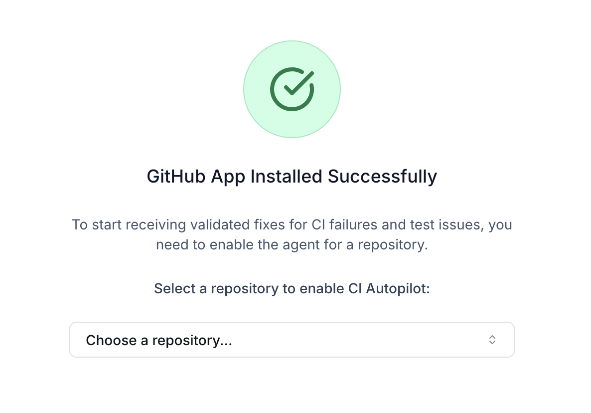 CI Autopilot automatically investigates CI failures in your pull requests and provides root cause analysis with suggested fixes, saving your team hours of debugging time. The following steps guide you through the onboarding process.